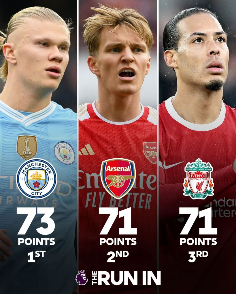 Con estos resultados, únicamente los de Pep Guardiola sumaron 3pts, quedando como líderes en solitario, mientras que los Gunners y los Reds se mantuvieron en 73pts.