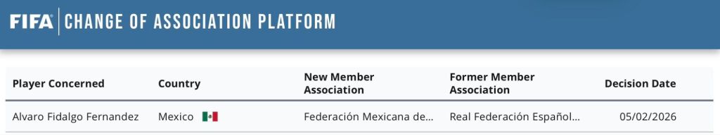 La FIFA notificó de manera positiva el trámite de “One Time Switch” solicitado por Álvaro Fidalgo y la FMF, lo que significa que el exmediocampista del Club América ya puede ser convocado por la Selección Mexicana.